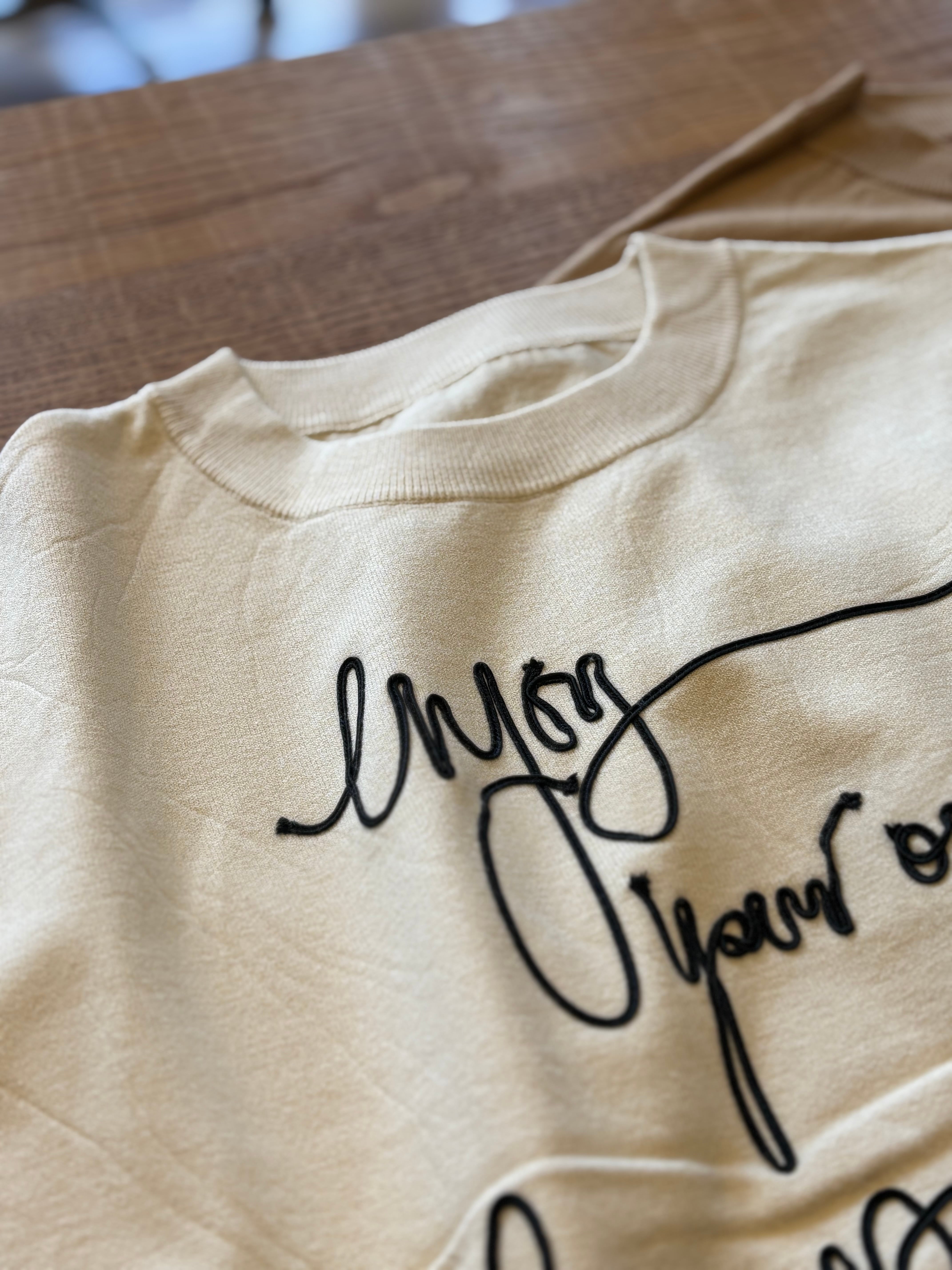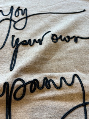 フロントには立体感のあるコード刺繍をあしらい、シンプルながら存在感のあるデザインに仕上げました。