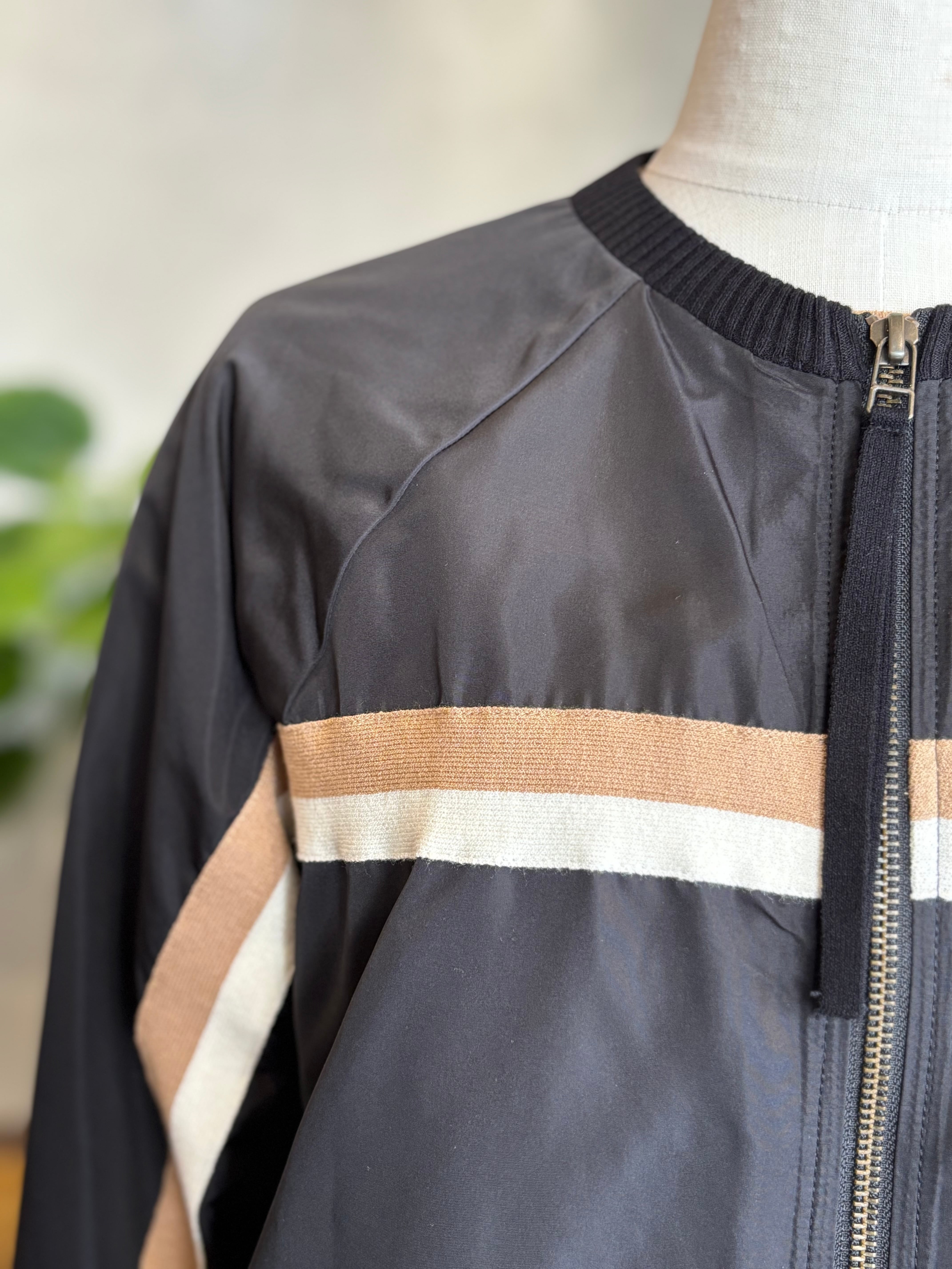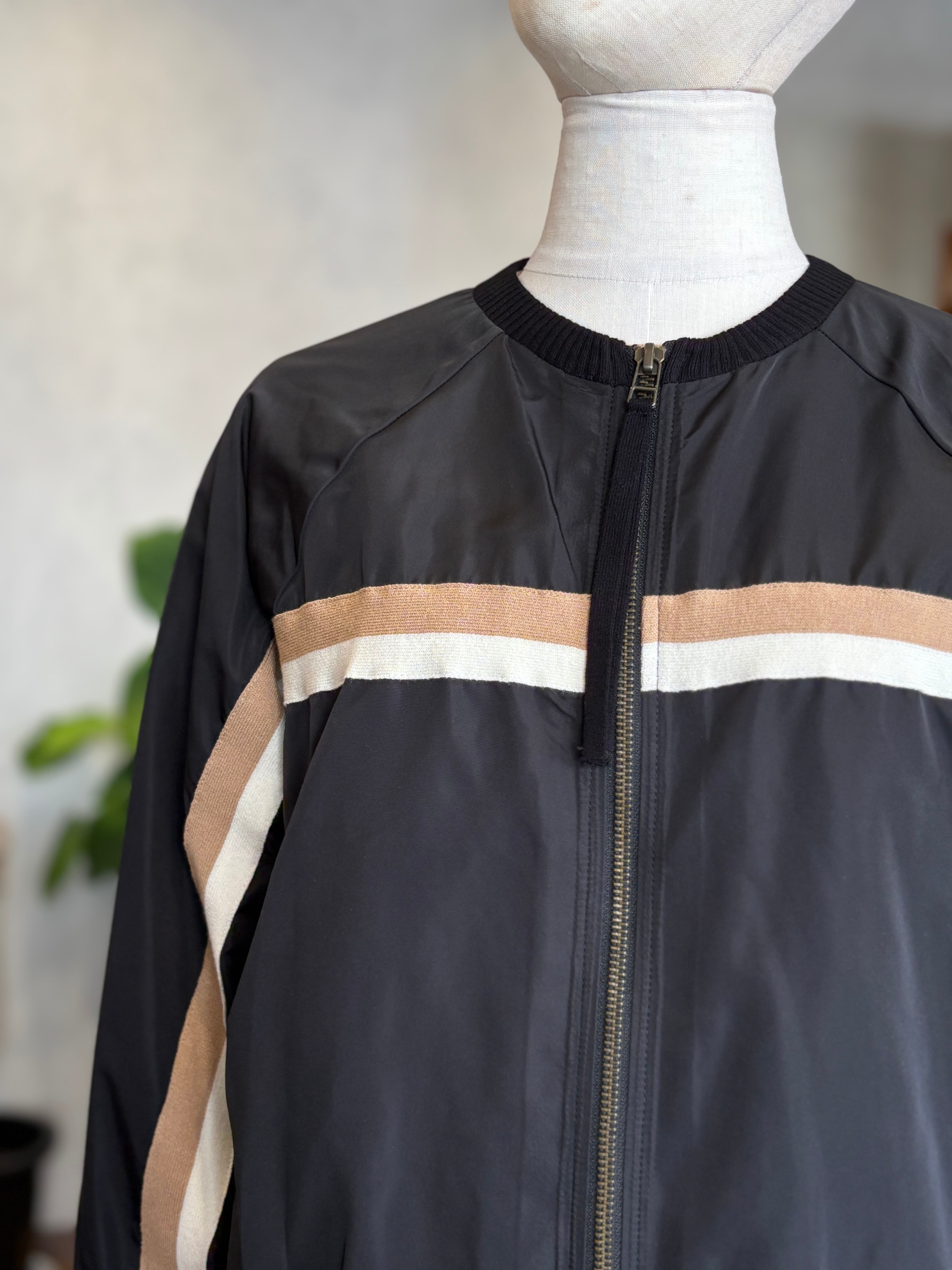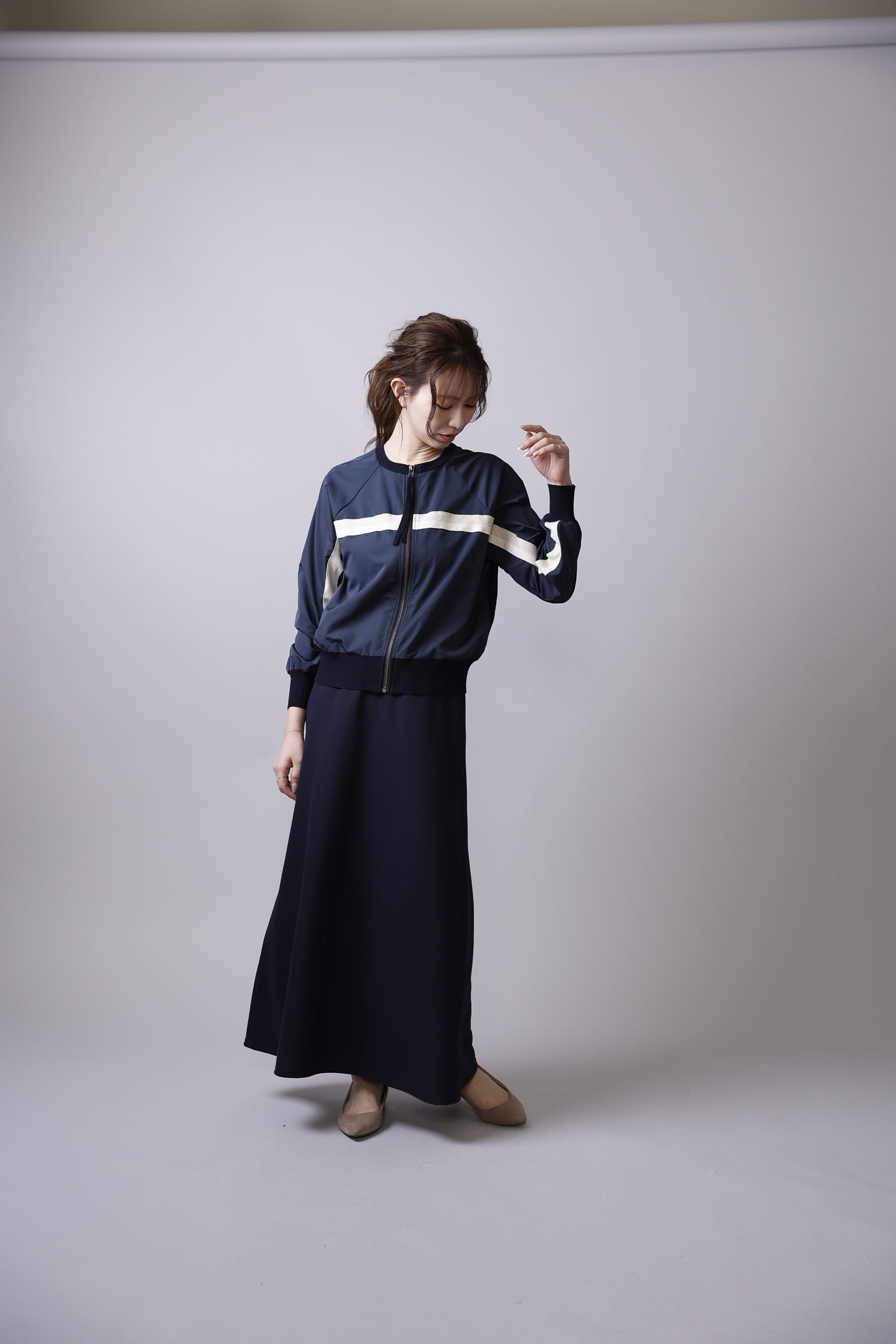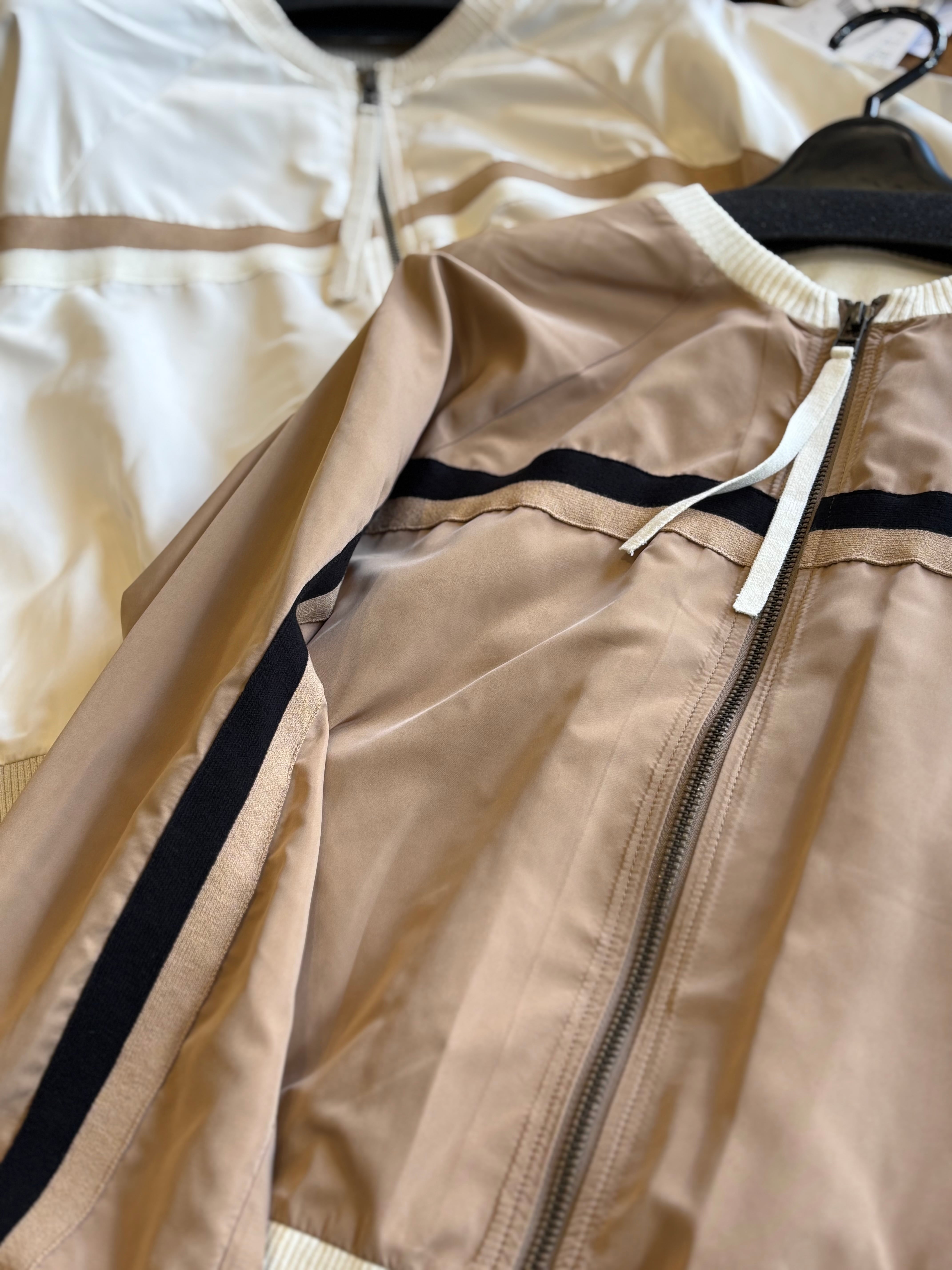 フロントから袖へと流れるラインデザインは、スポーティな要素を取り入れつつも上品に仕上げられており、大人の女性にふさわしい洗練された雰囲気を演出します。