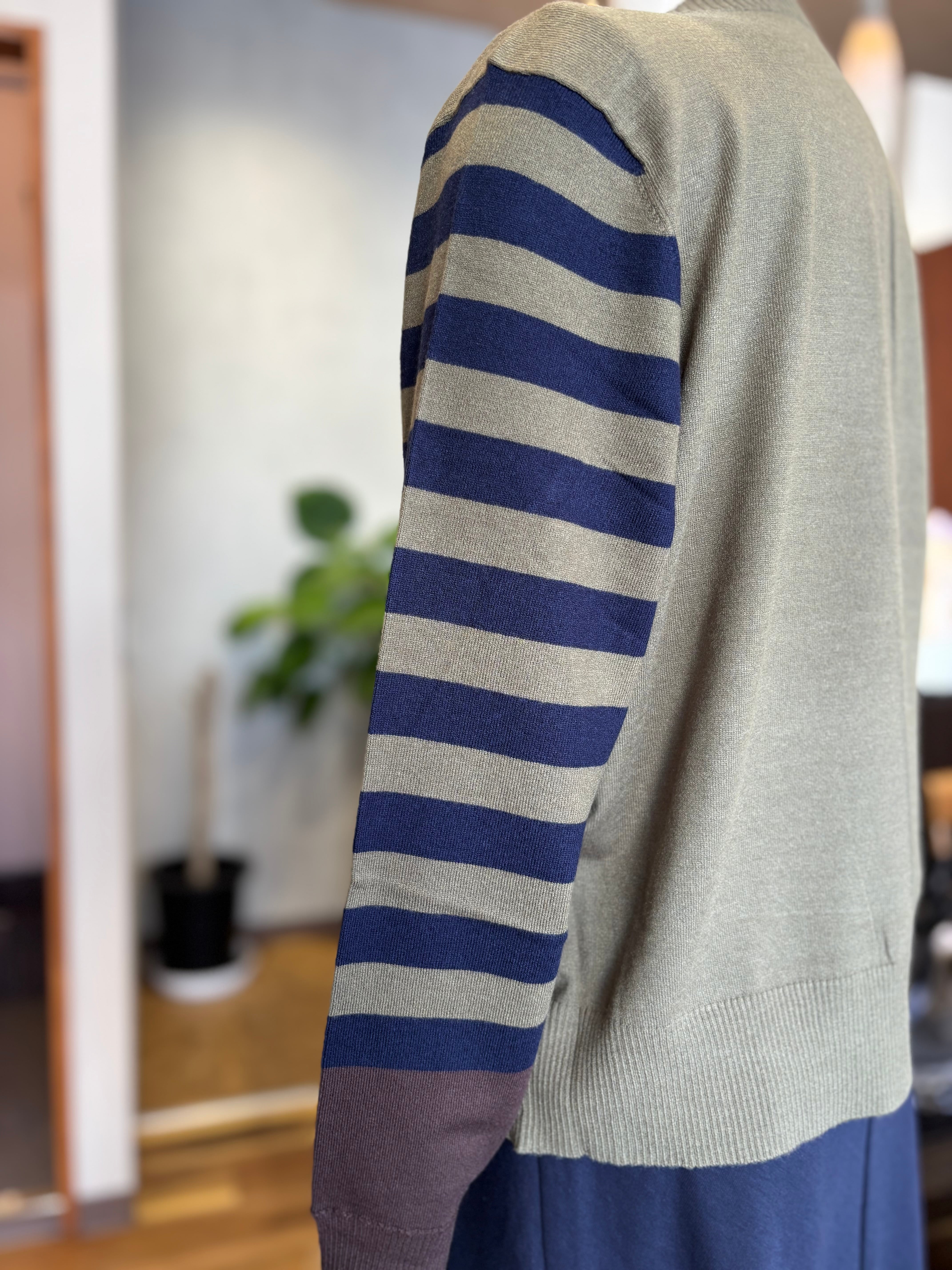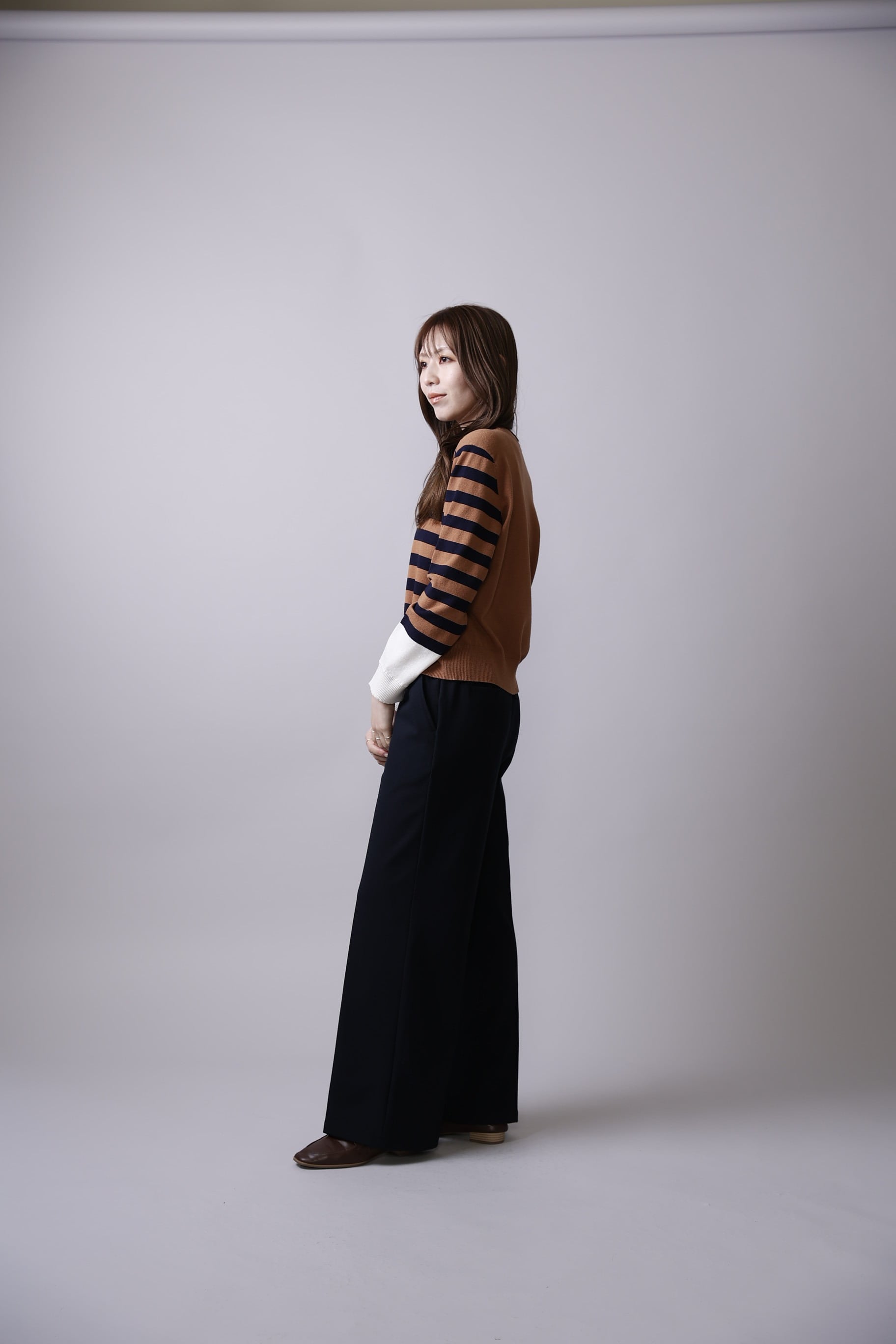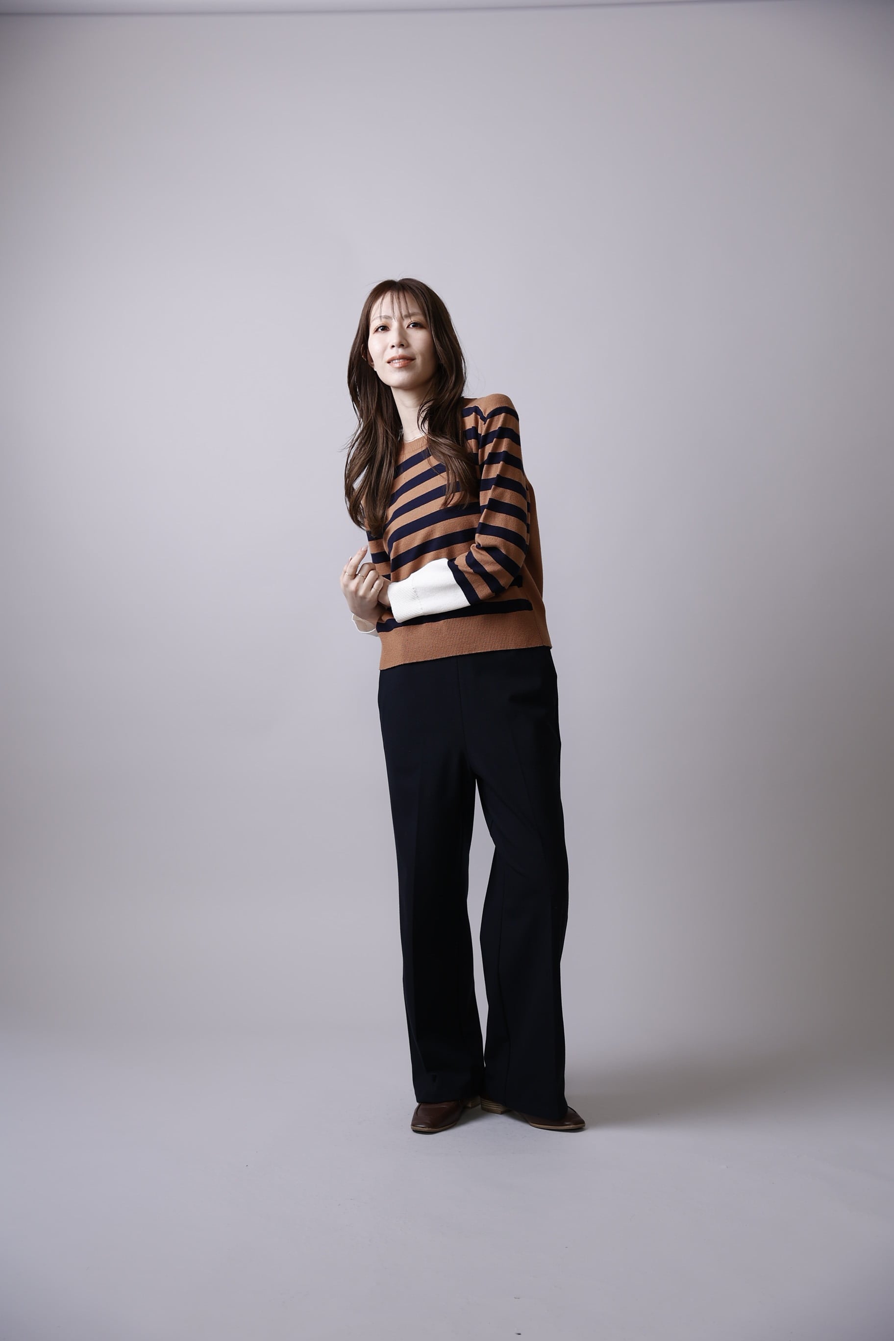 柔らかな肌ざわりとほどよい落ち感が魅力のプルオーバーはボーダーに、袖口の配色がアクセントとなり、シンプルな中に大人の遊び心をプラスしてくれます。
