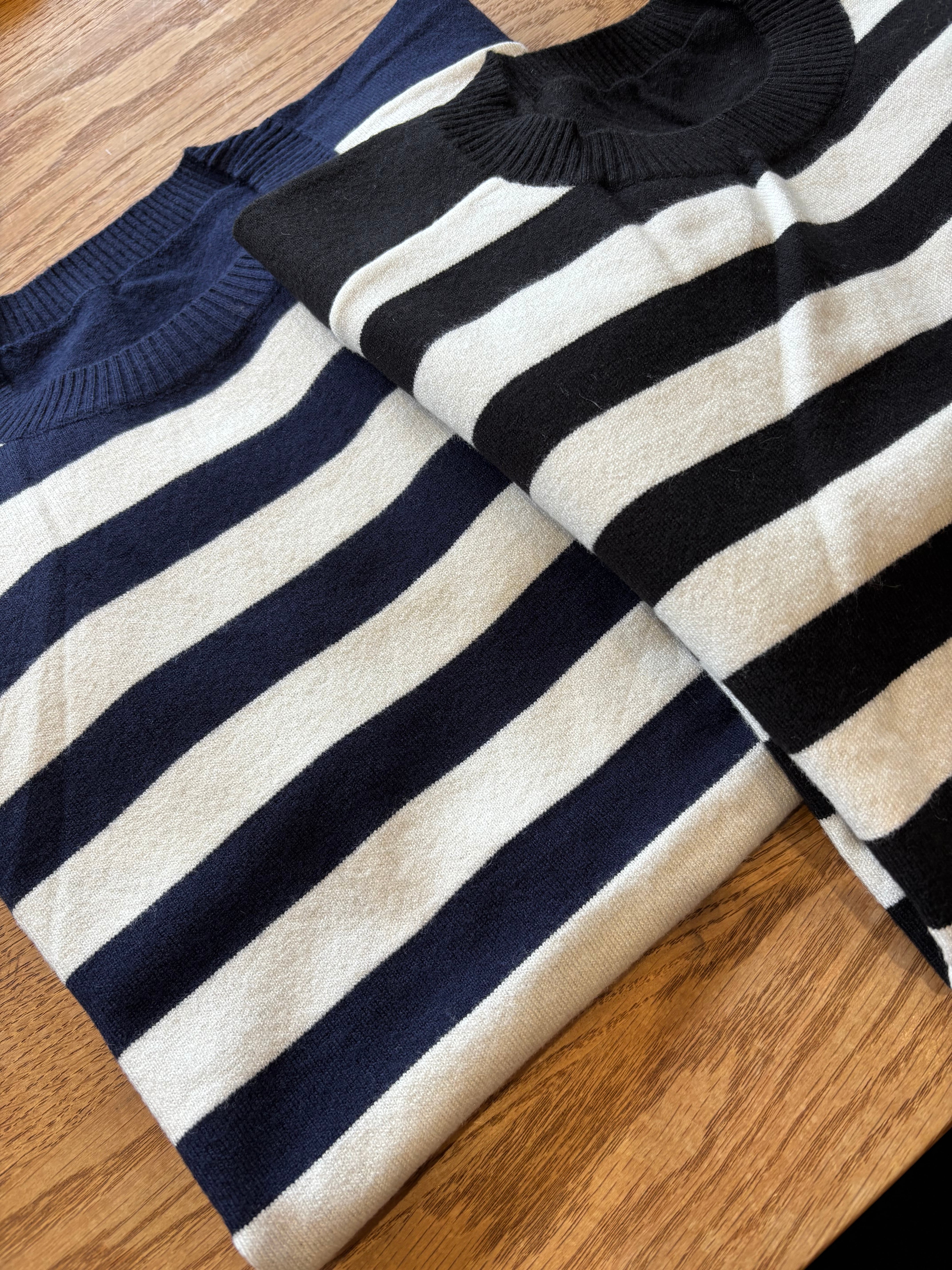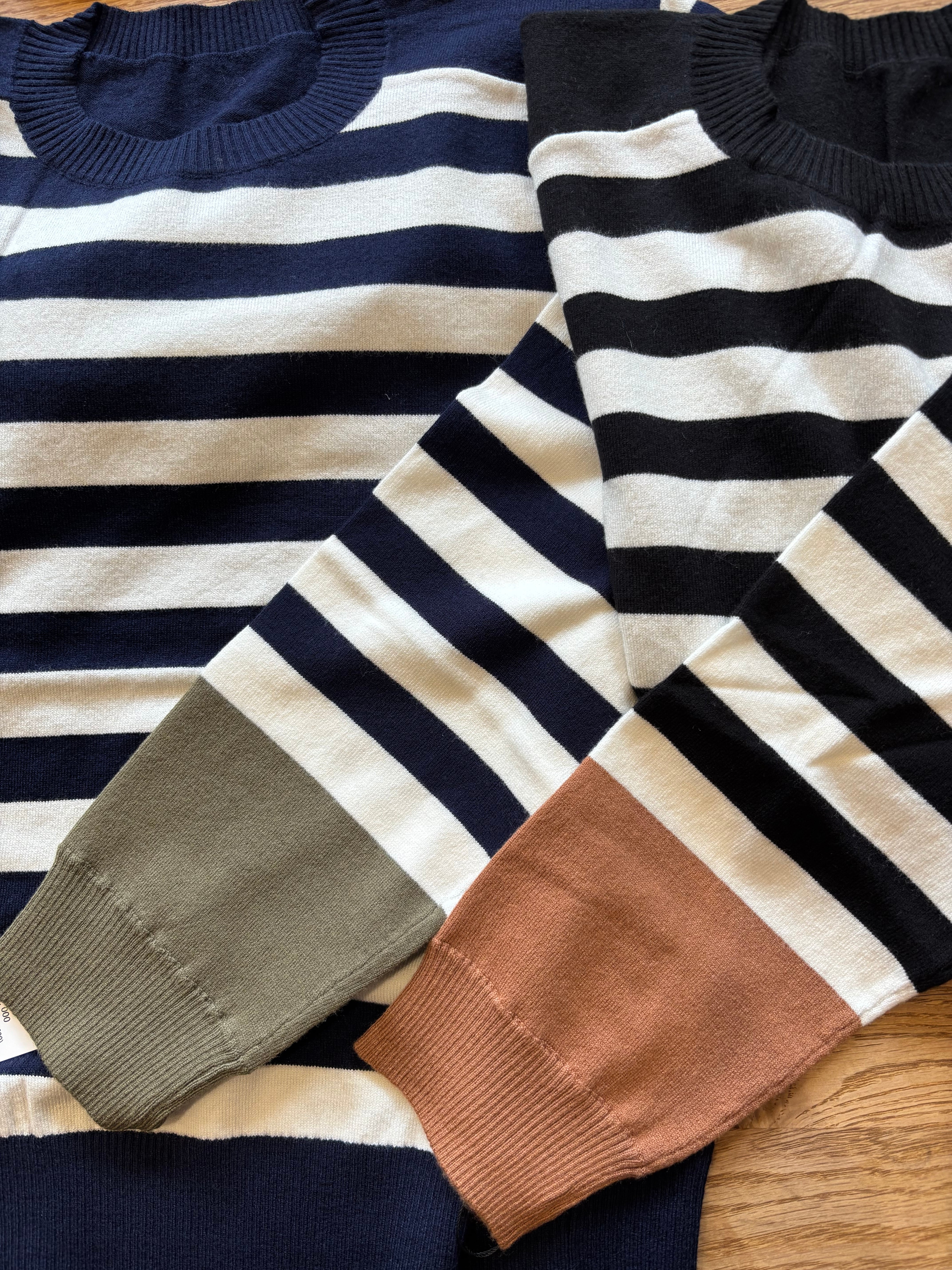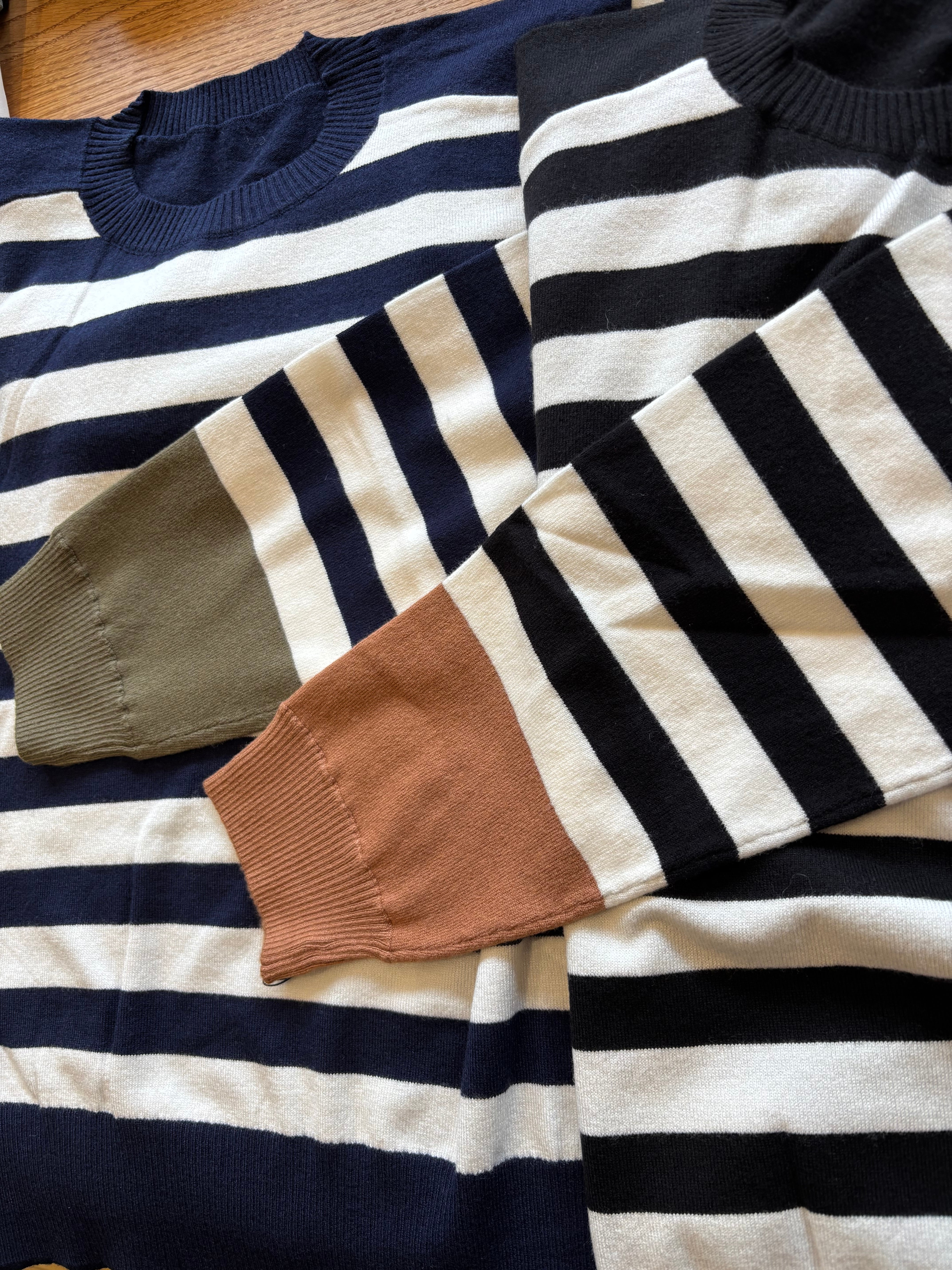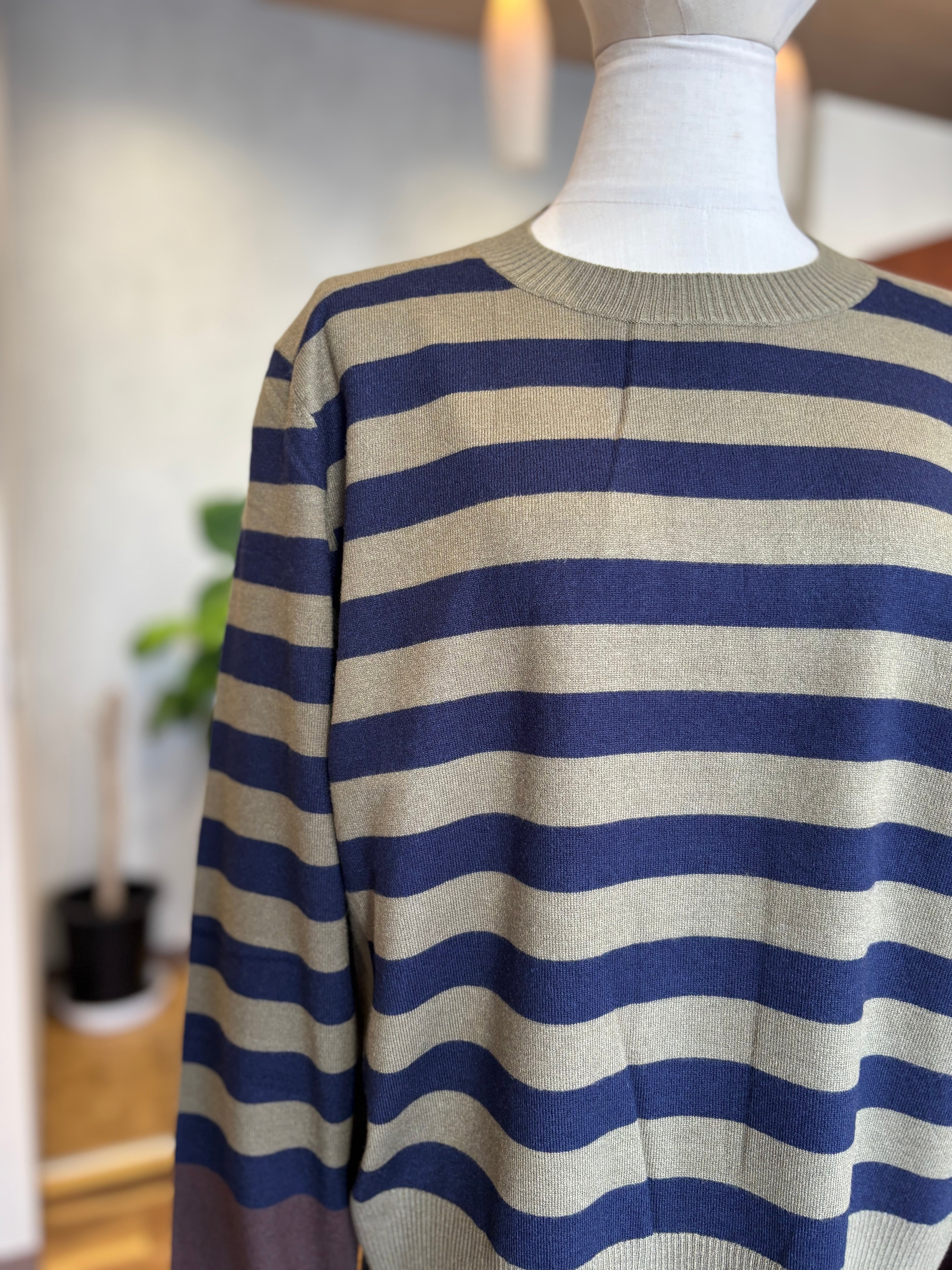 柔らかな肌ざわりとほどよい落ち感が魅力のプルオーバーはボーダーに、袖口の配色がアクセントとなり、シンプルな中に大人の遊び心をプラスしてくれます。