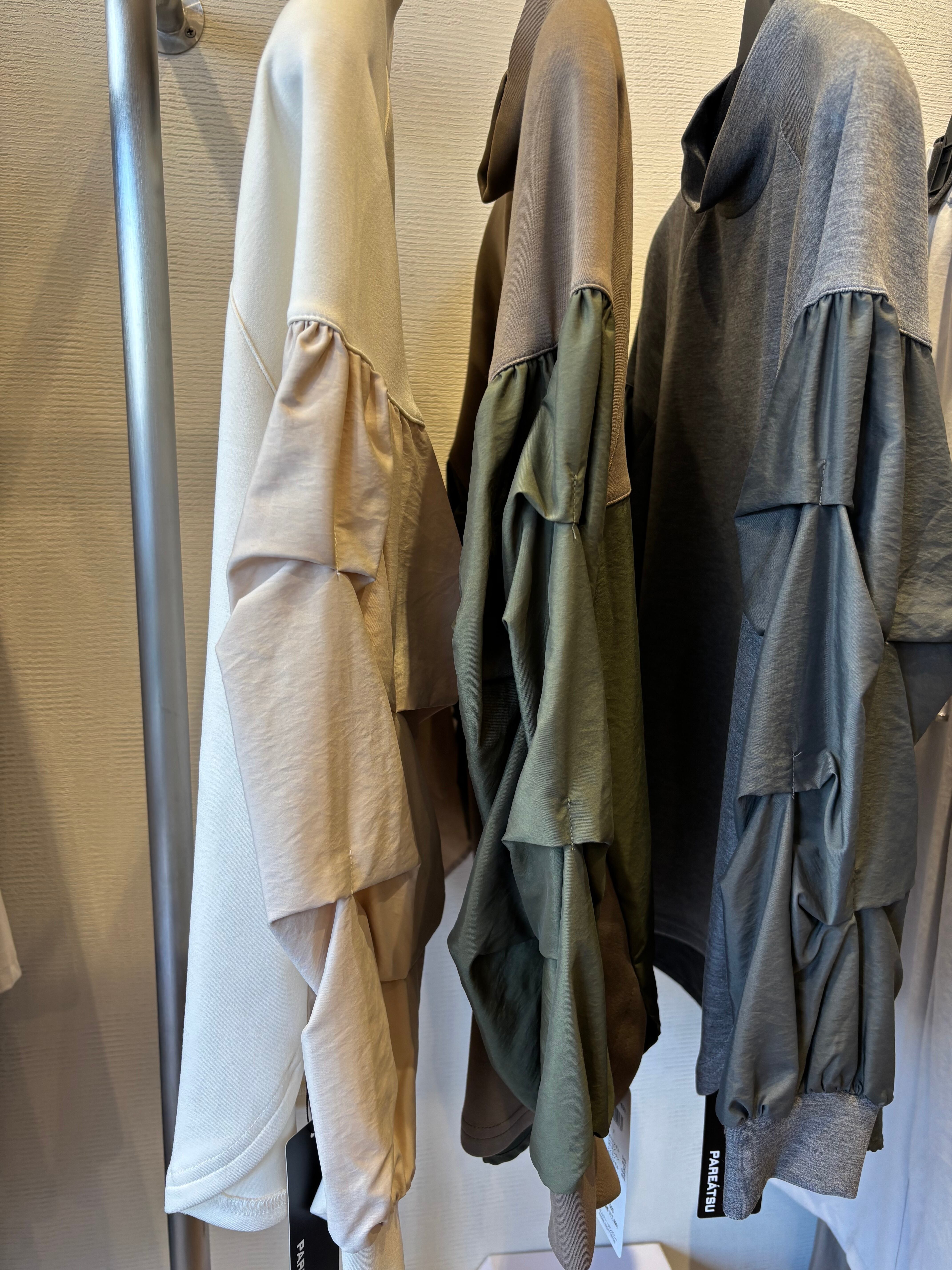 異素材の切り替えが目を惹くデザインプルオーバー。