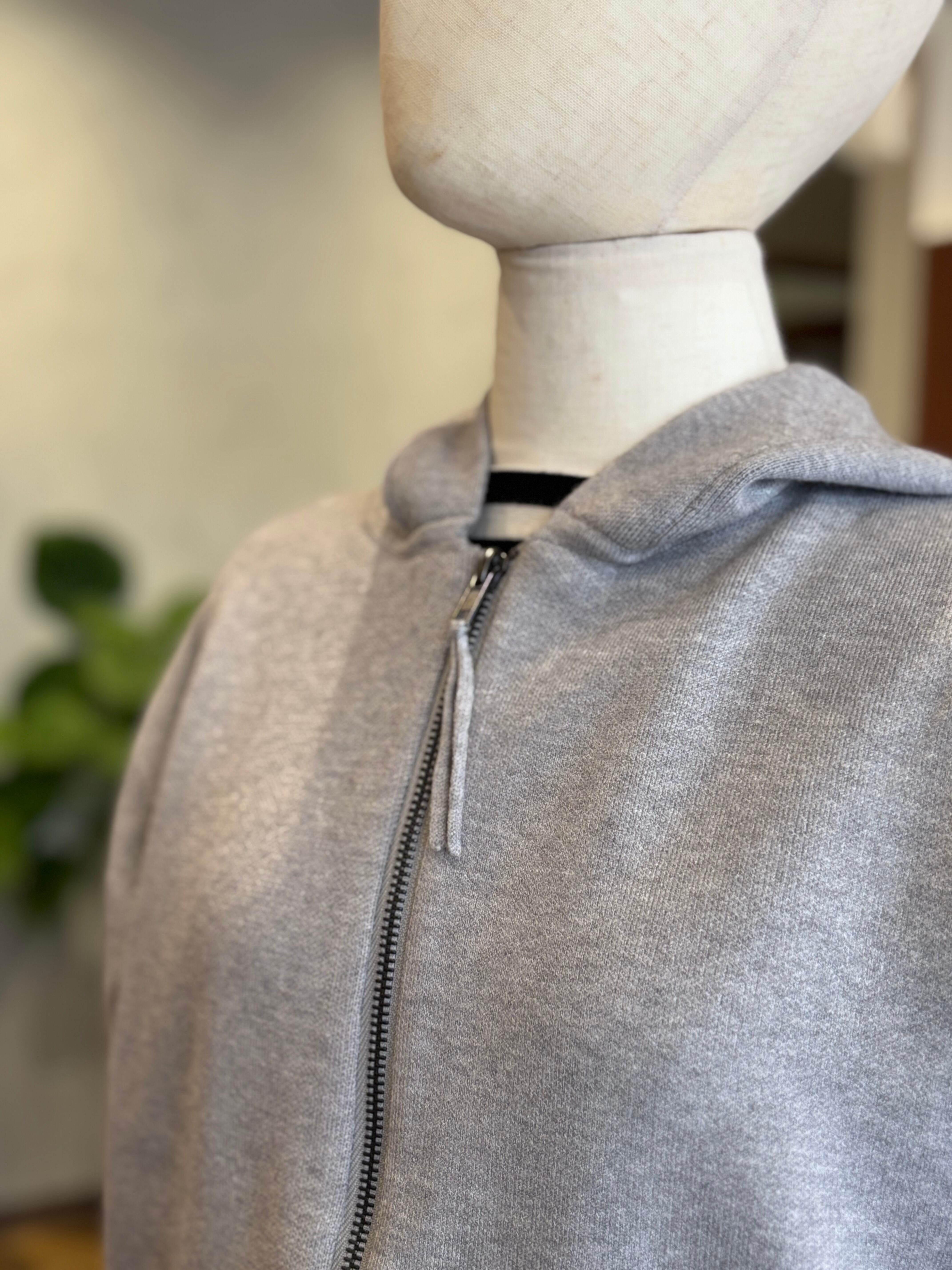 軽やかなレーヨン×ポリエステル素材を使用した、ジップアップタイプのフーディ。