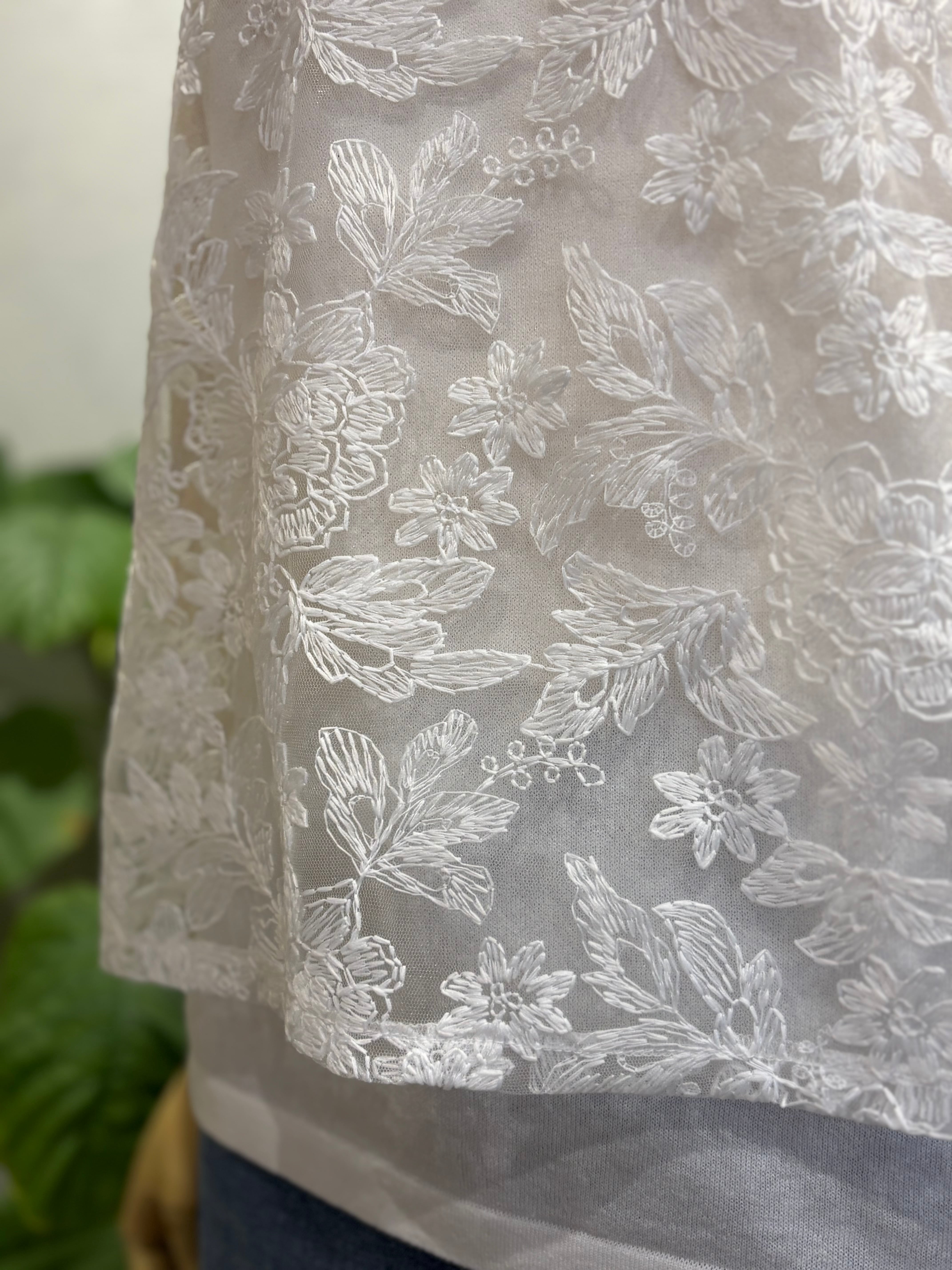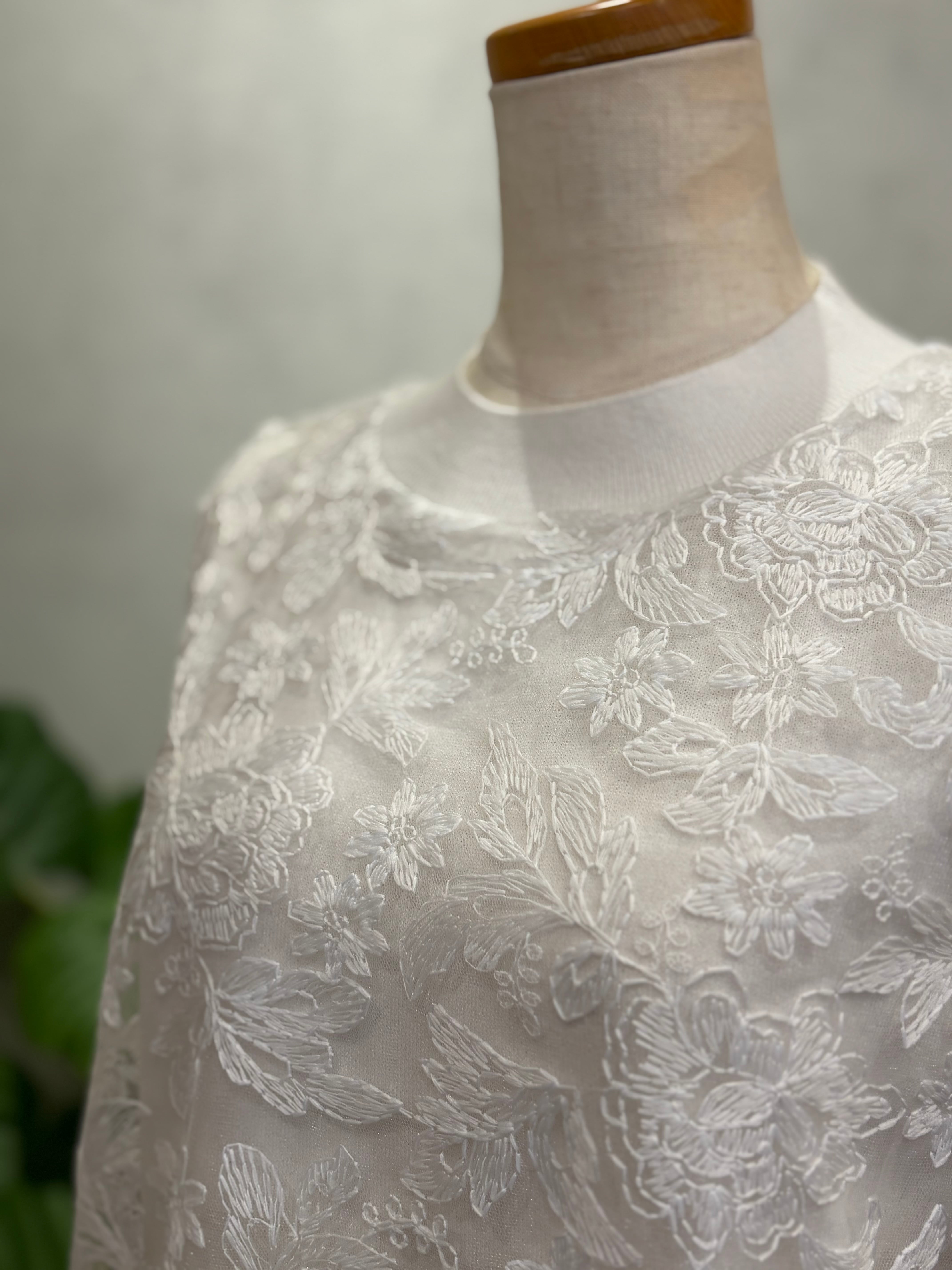 インナーとしてジャケットやカーディガンの下に合わせても、レースの表情が引き立ちます。