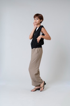 ほんのり透ける素材感が、コーディネートに涼やかさと抜け感をプラスしてくれます。