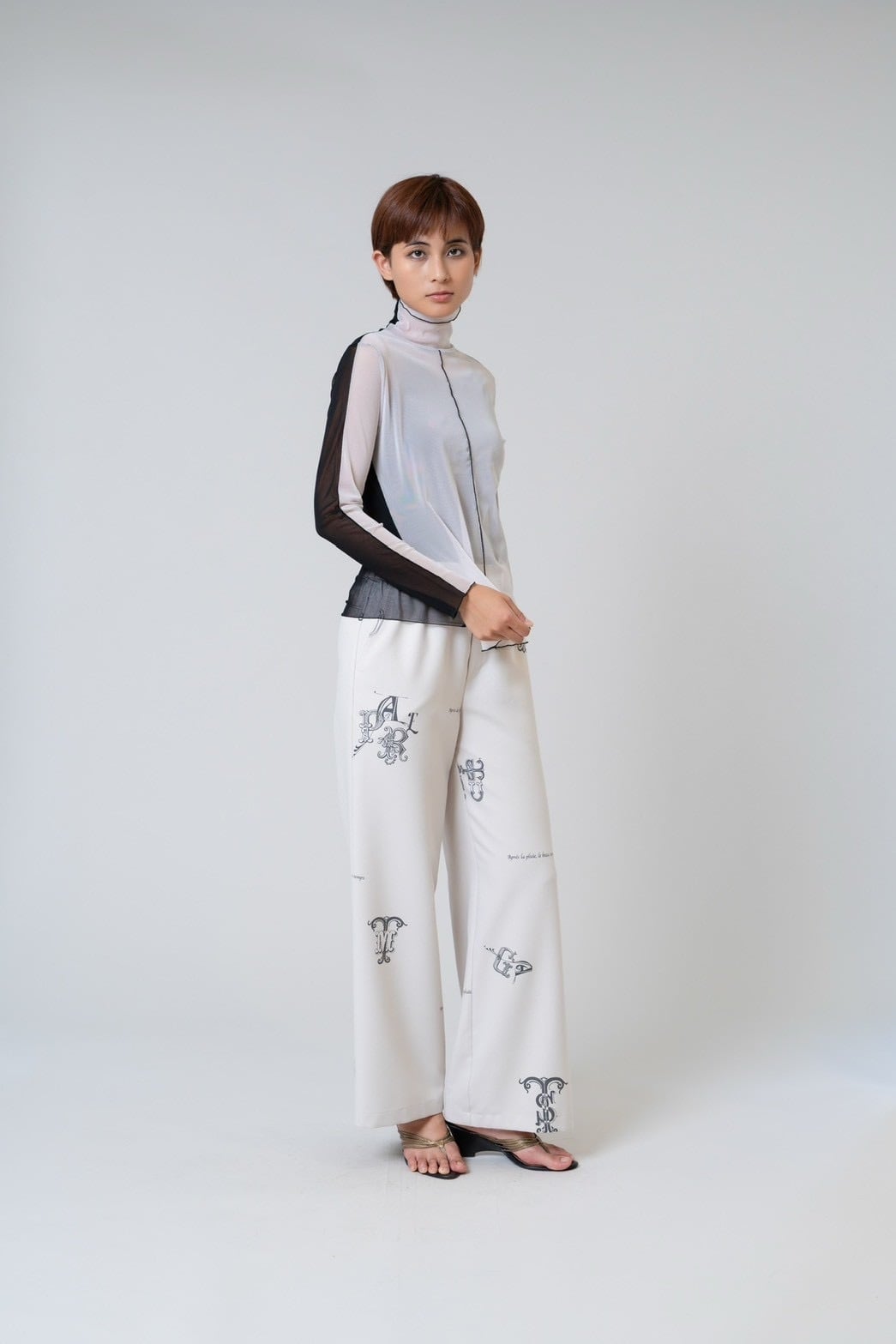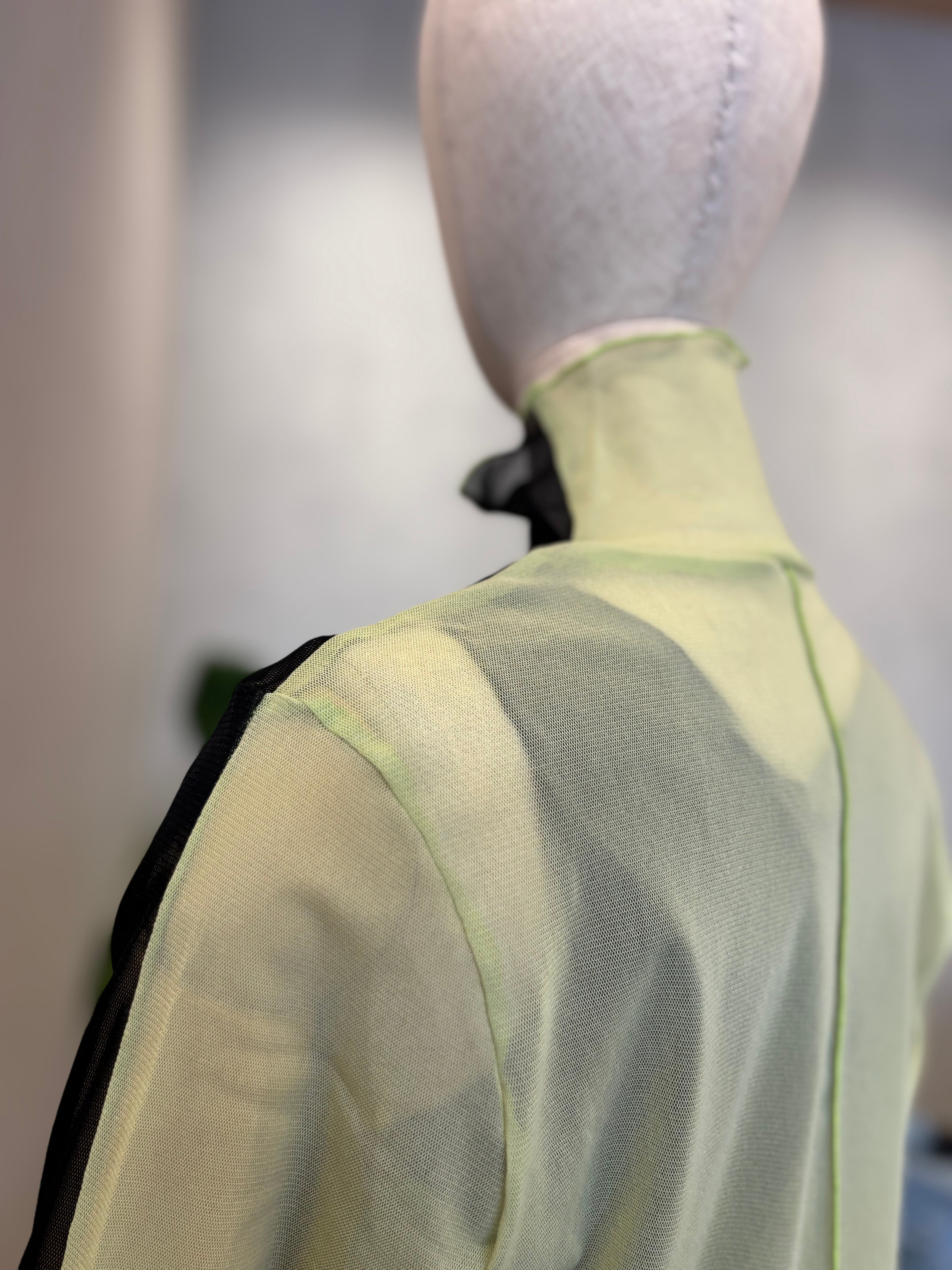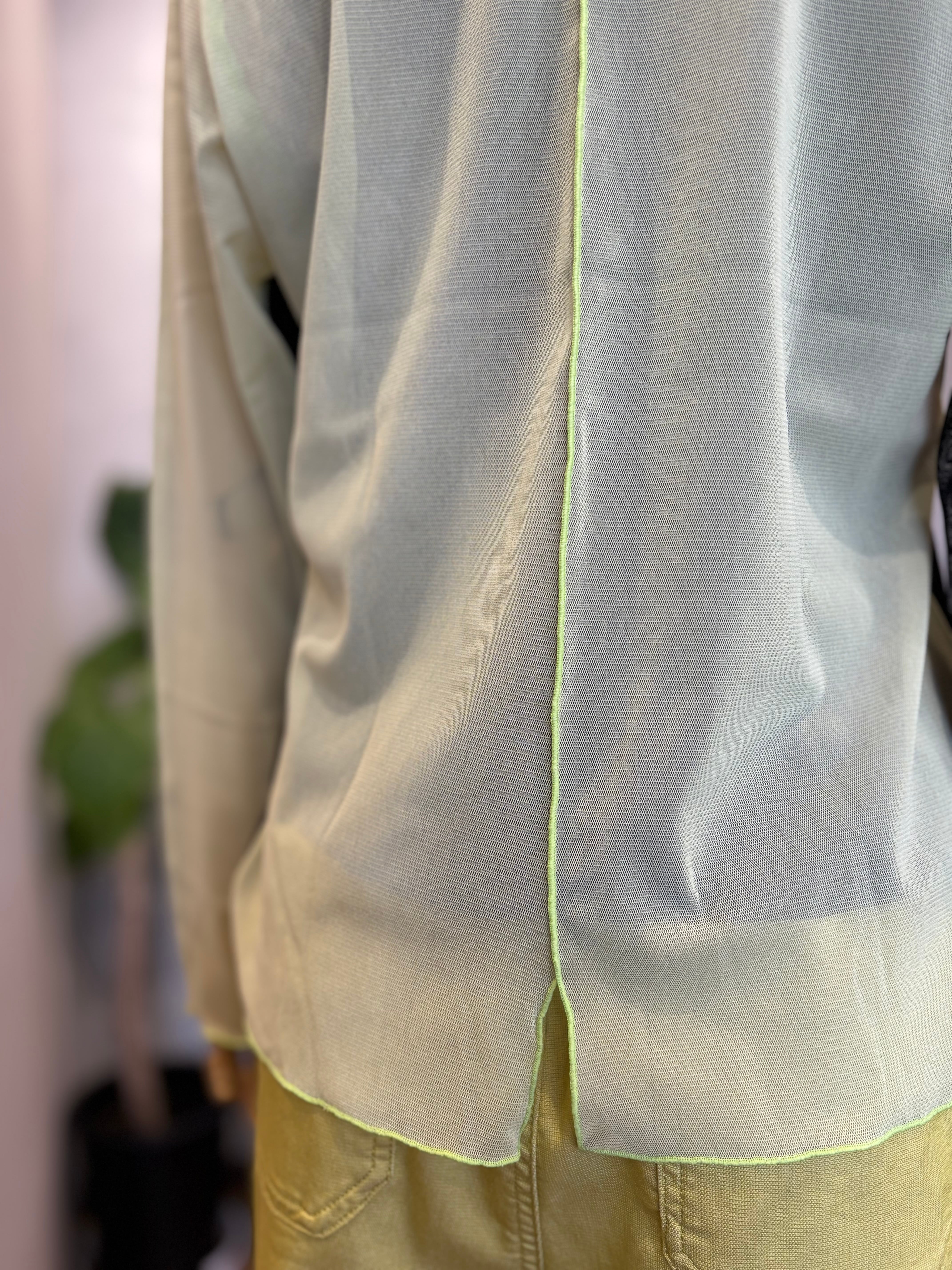 程よい透け感のあるパワーネット素材が、軽やかで女性らしい雰囲気を演出します。