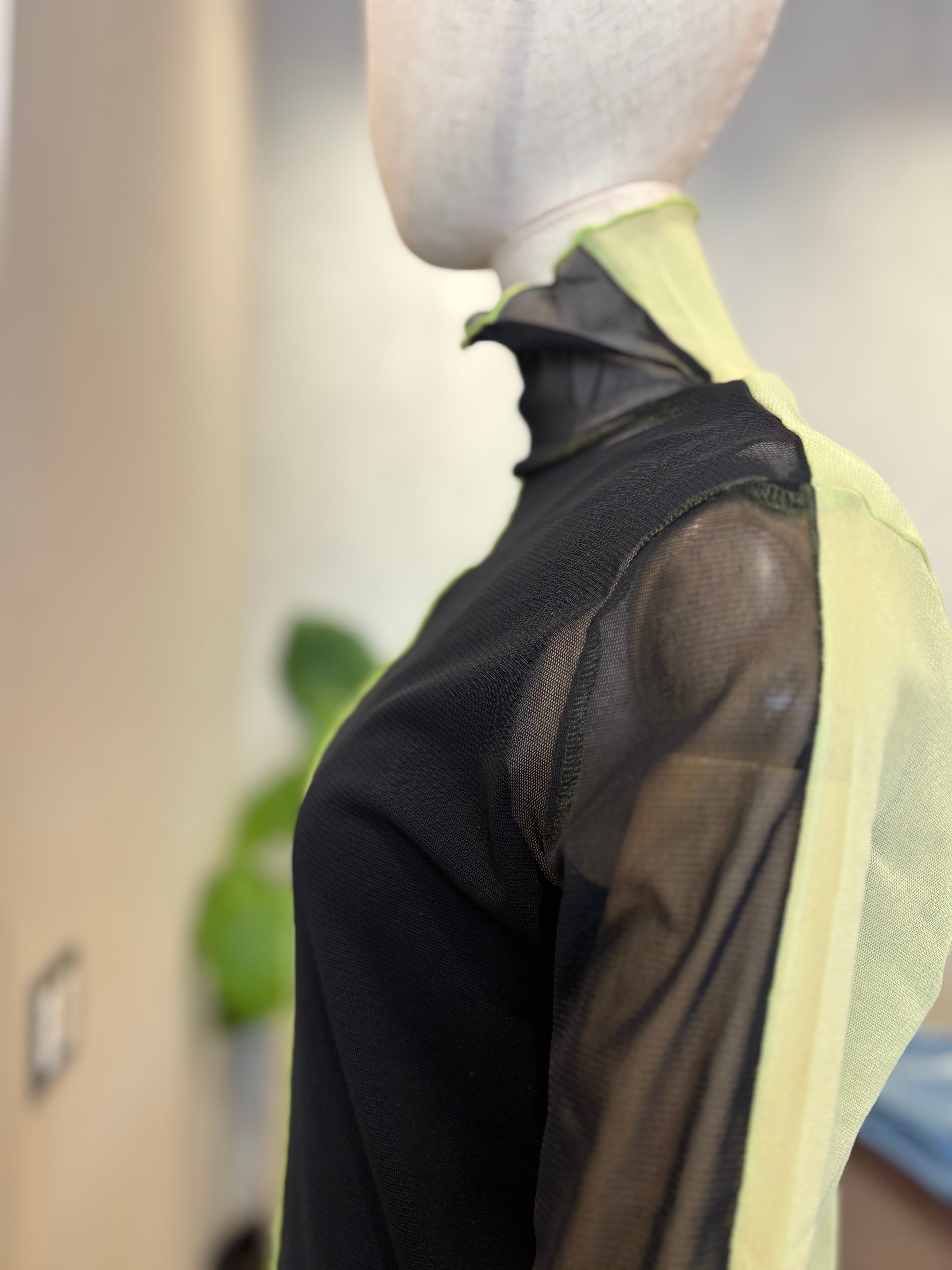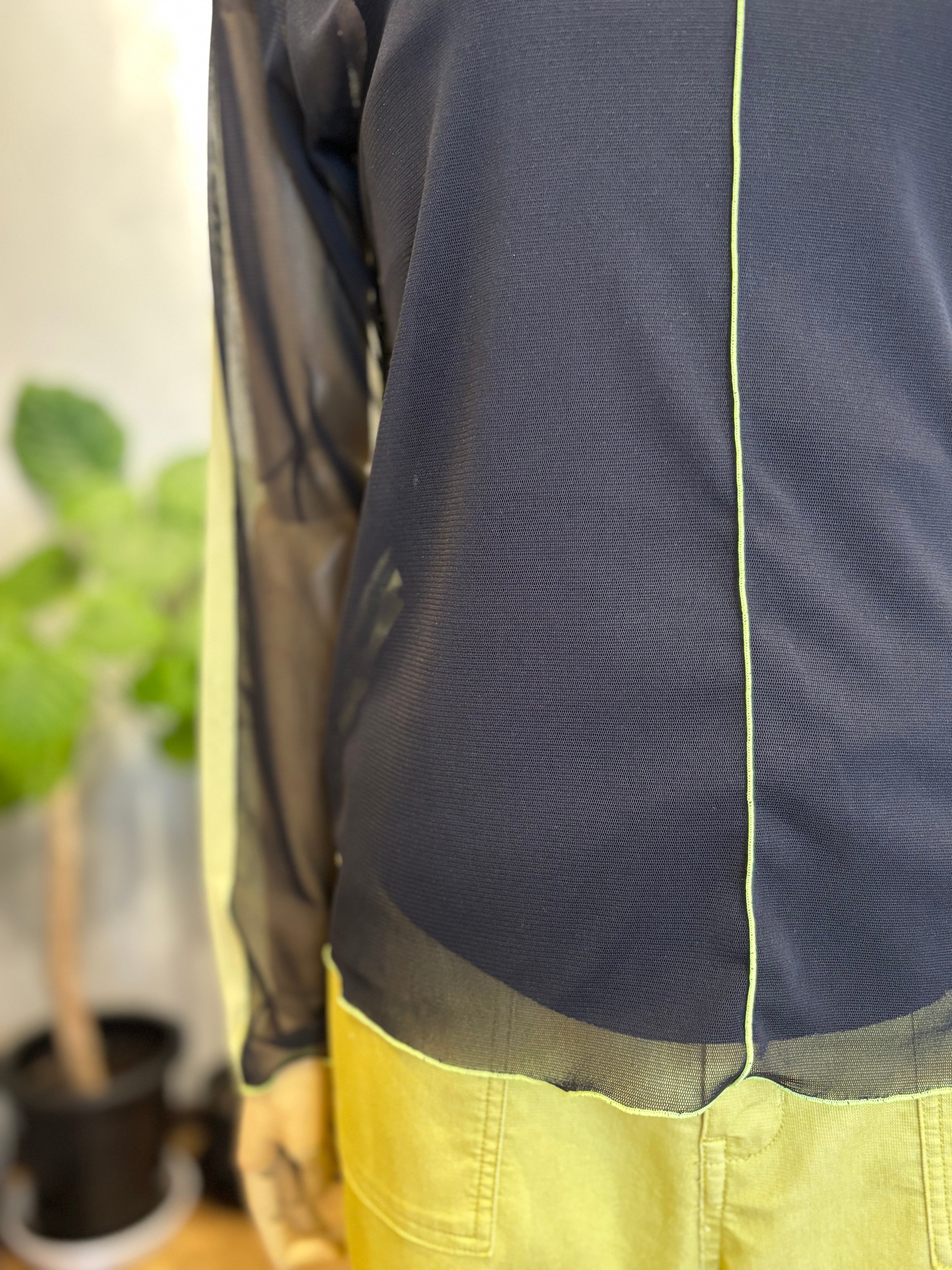 前後で配色を切り替えた、印象的なデザインのパワーネットプルオーバー。