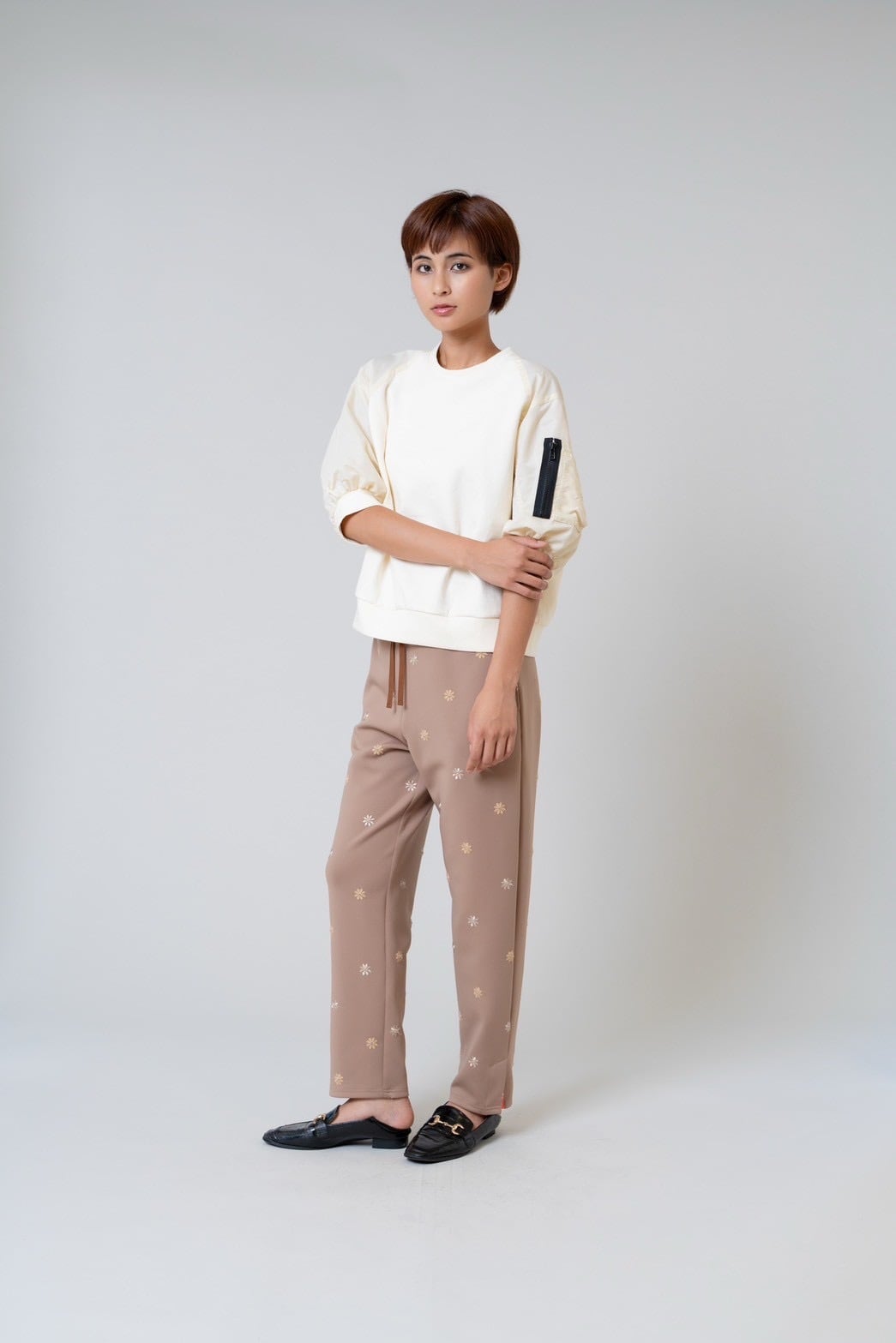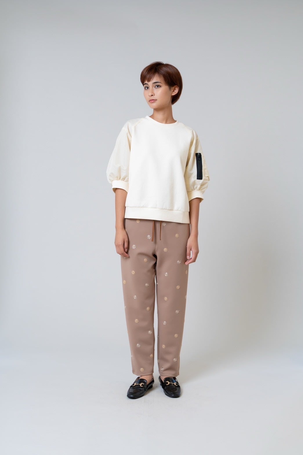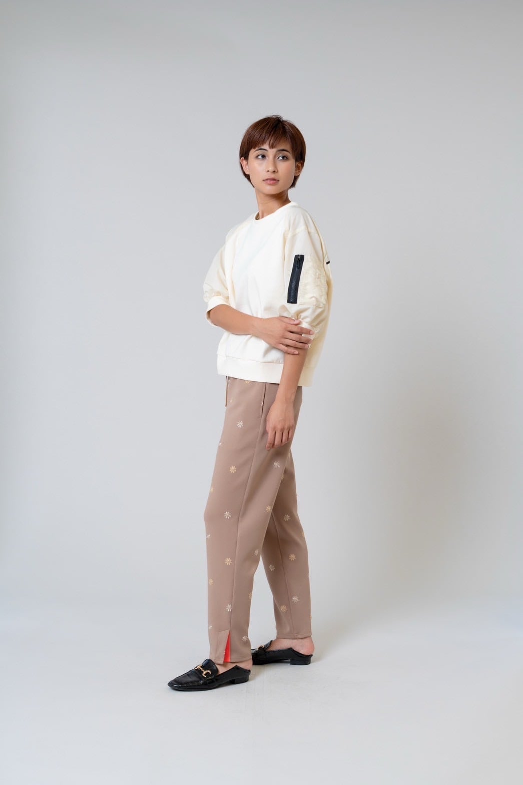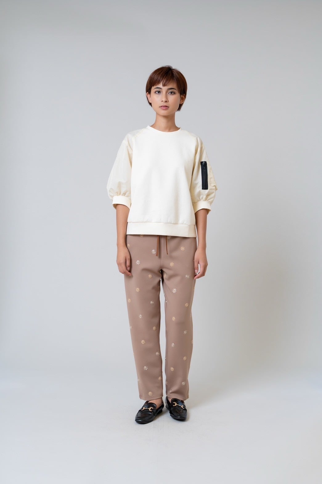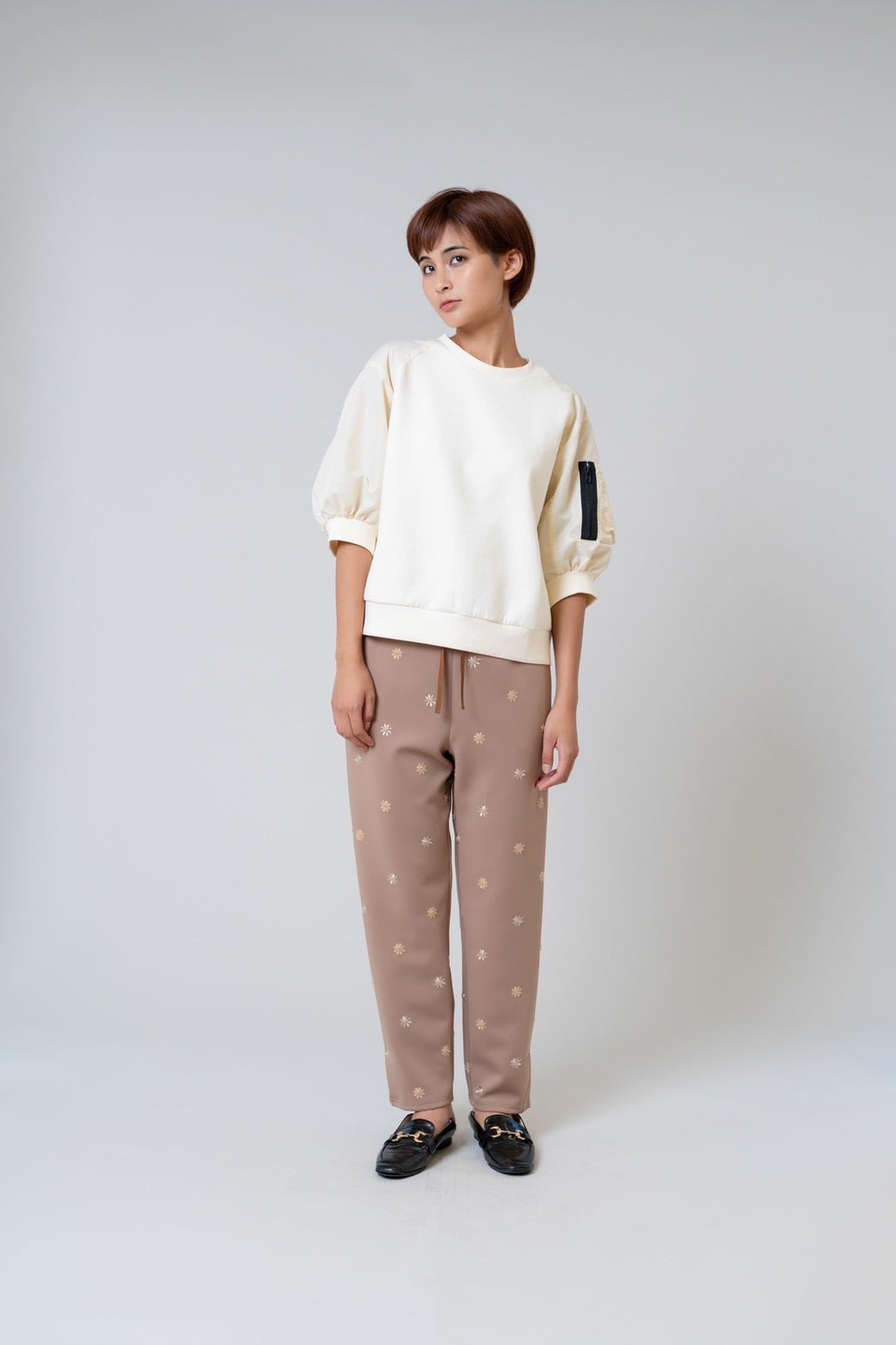 柔らかなダンボールニットに、タフタ素材の七分袖を組み合わせることで、程よい立体感と軽やかさをプラスしました。